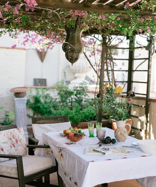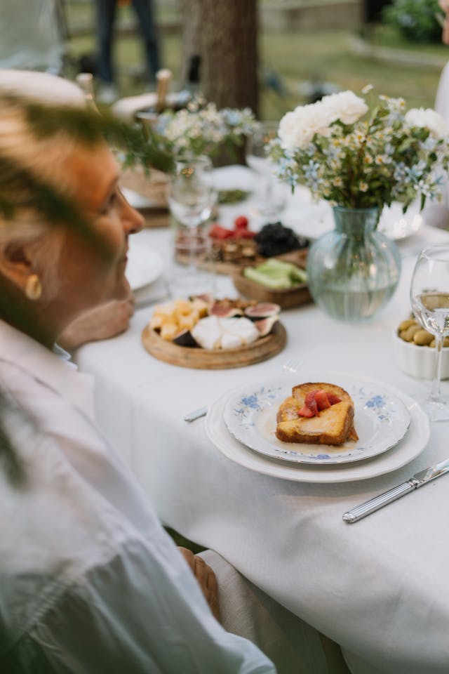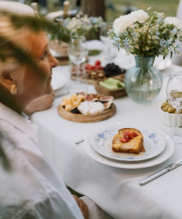 Antes de pensar en el menú, el ambiente lo es todo. Puedes montar la mesa en el jardín, en la terraza o junto a una ventana con buena luz natural. Agrega detalles como: